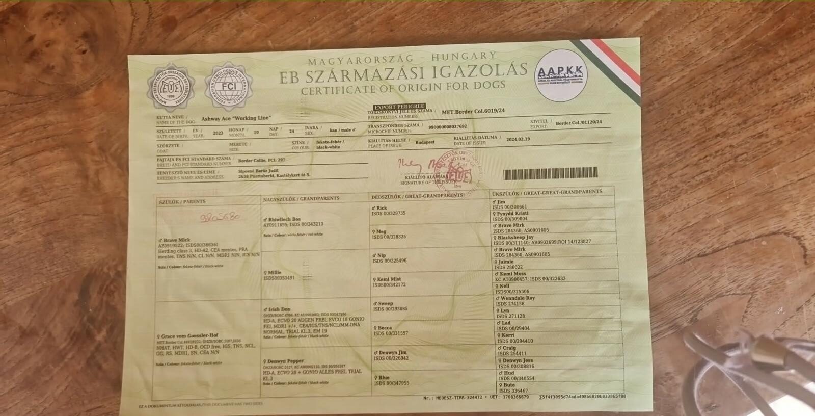 Stamboomnummer: 6019/24 / ISDS HU/399715