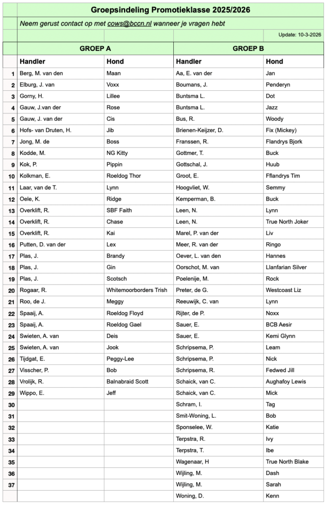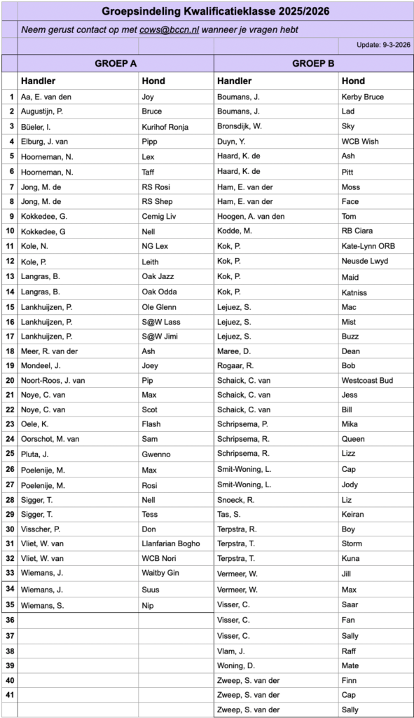 Dit gebeurt op een wedstrijddag waarvoor je zelf bent ingeschreven. Op de startlijst staat duidelijk vermeld welke handlers die dag als opzetter zijn ingedeeld.